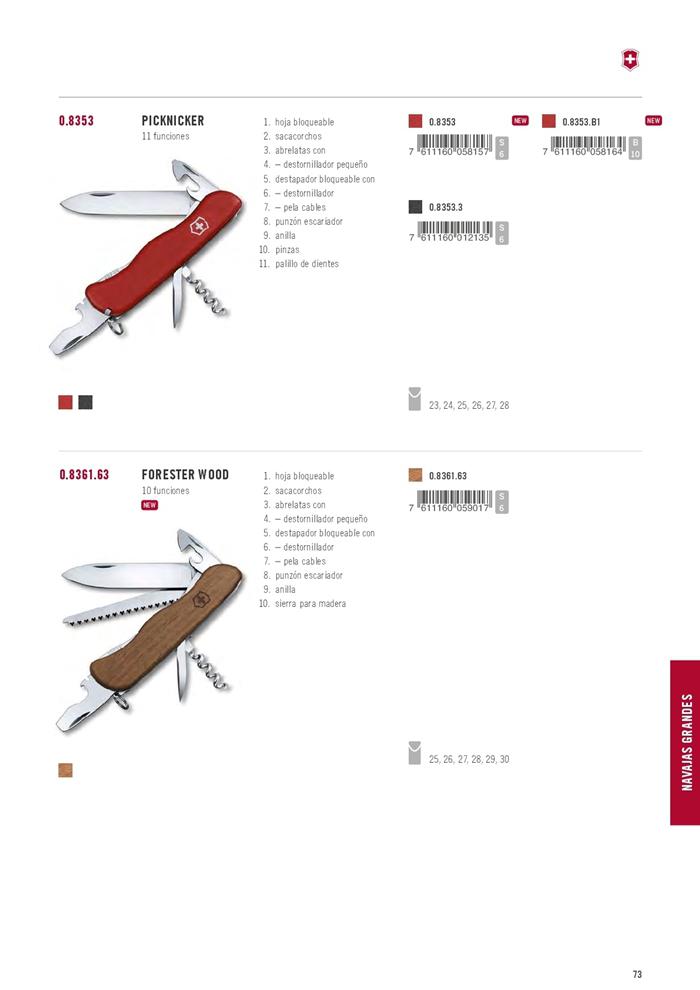 Polivalente com 11 funções: lâmina de bloqueio, saca-rolhas, abridor de latas com chave de fenda, descascador de fios, perfurador alargador, anel, pinça e palito.