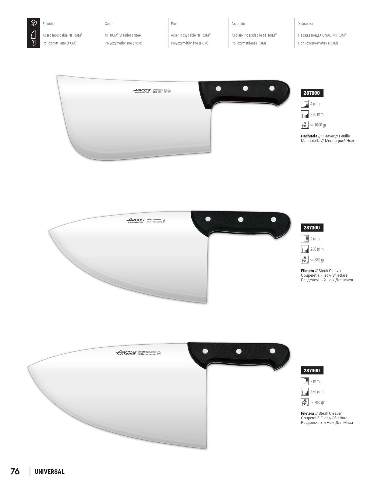 Profissional machadinha. NITRUM lâmina de aço inoxidável. 2 mm de espessura. 260 e 280 mm. 540 gramas e 640 gramas (dependendo do modelo). POM Mango. UNIVERSAL série.