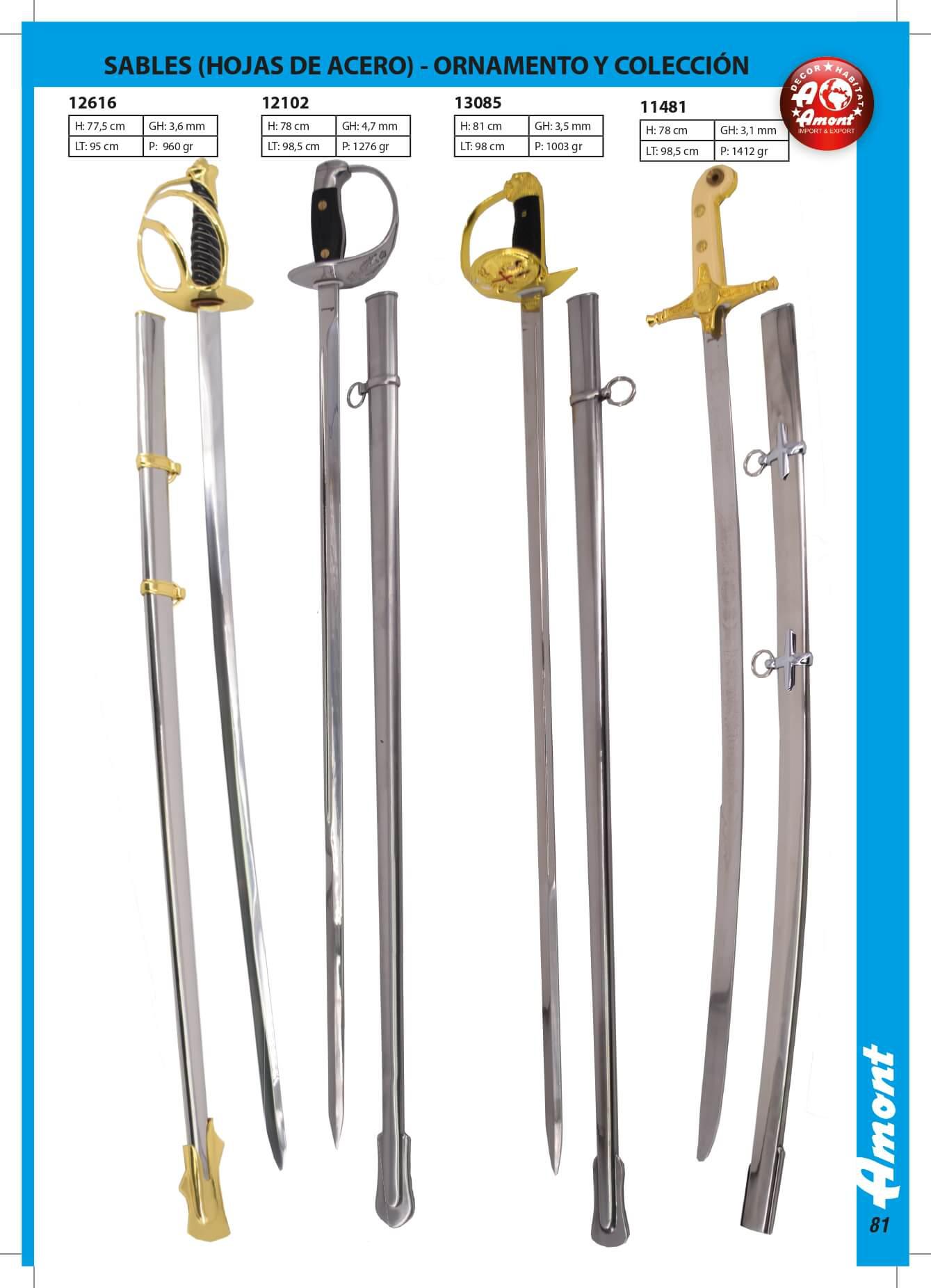 Sabres com lâmina de aço, ornamentais e cobrança.
