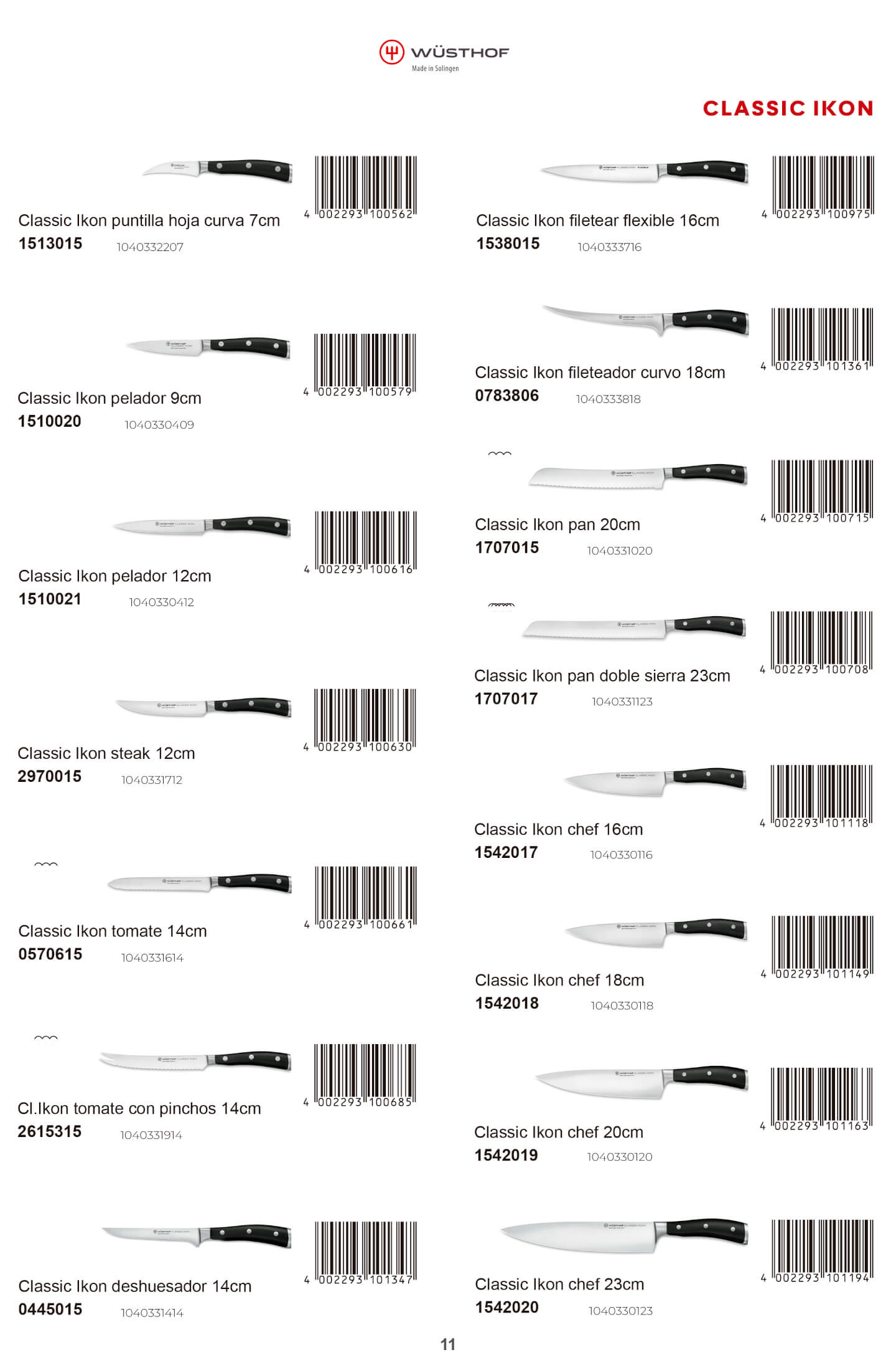 Facas Wusthof, série clássica IKON. Diferentes tamanhos.