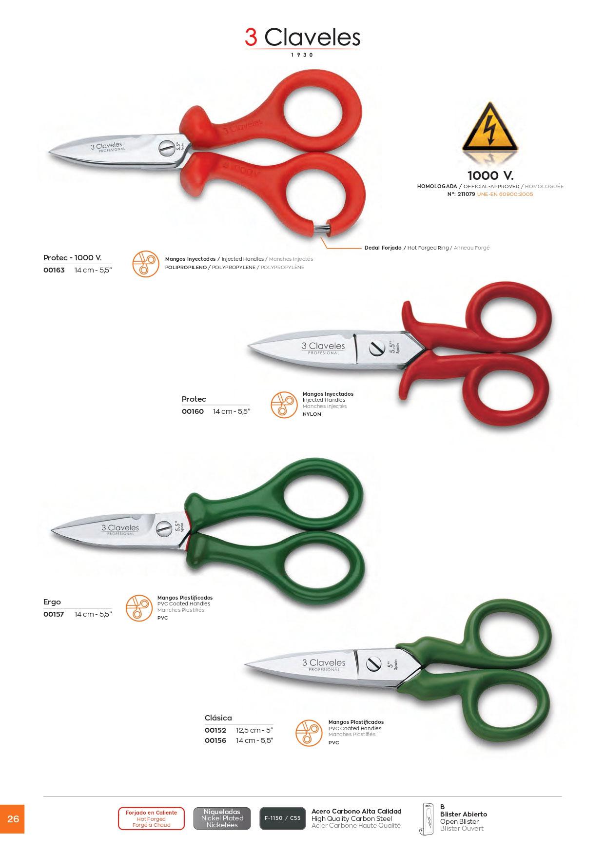 Tesoura profissional eletricista, niquelado. Hot forjado, aço carbono, de alta qualidade.
