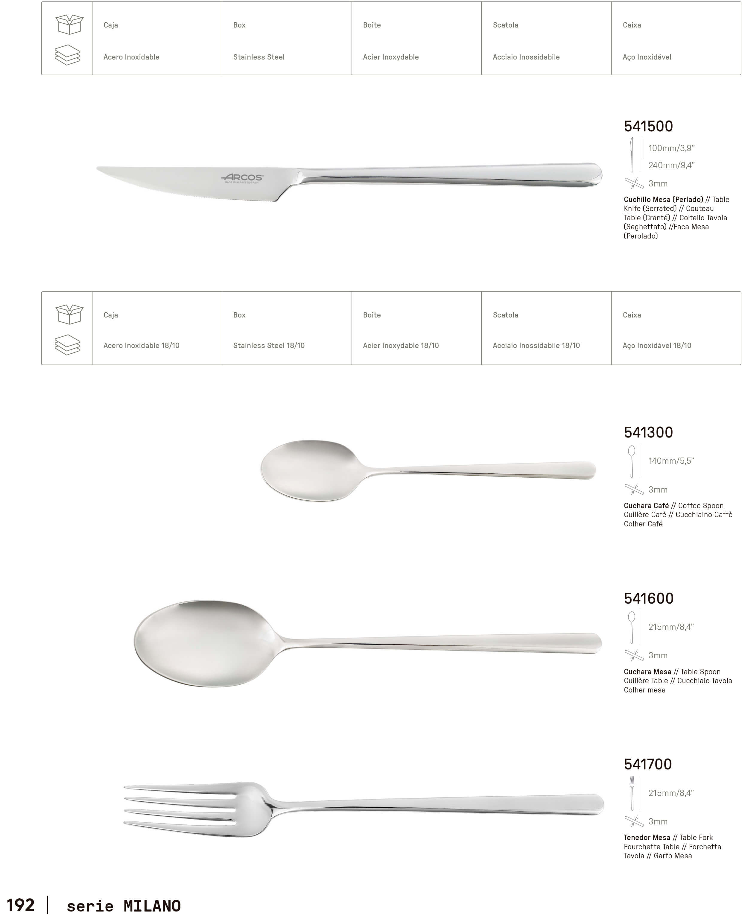 Cuchara Mesa Monoblock Serie Milano Arcos