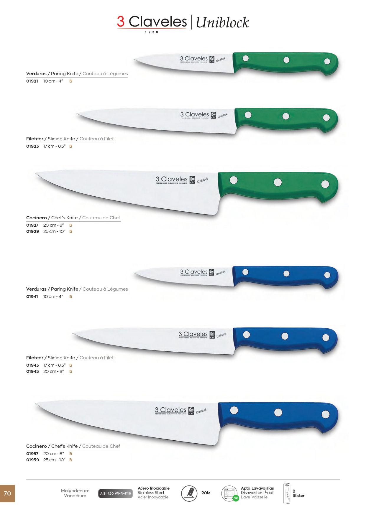 Cuchillo cocinero uniblock con hoja de 20 cm 3 Claveles con mango...