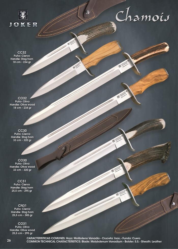 Mangos en distintos materiales: asta de ciervo o madera de olivo.