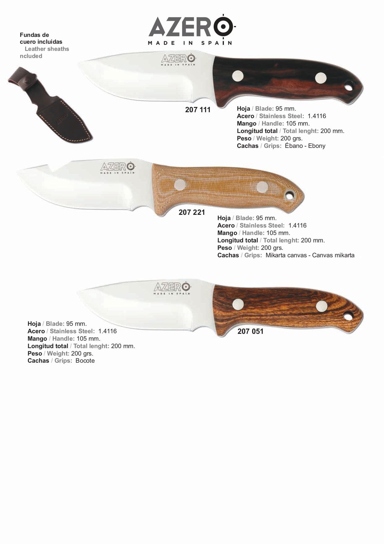 Cuchillos cazaAcero ACX-380Empuñadura Mikarta canvas / BocoteFunda de cuero incluida