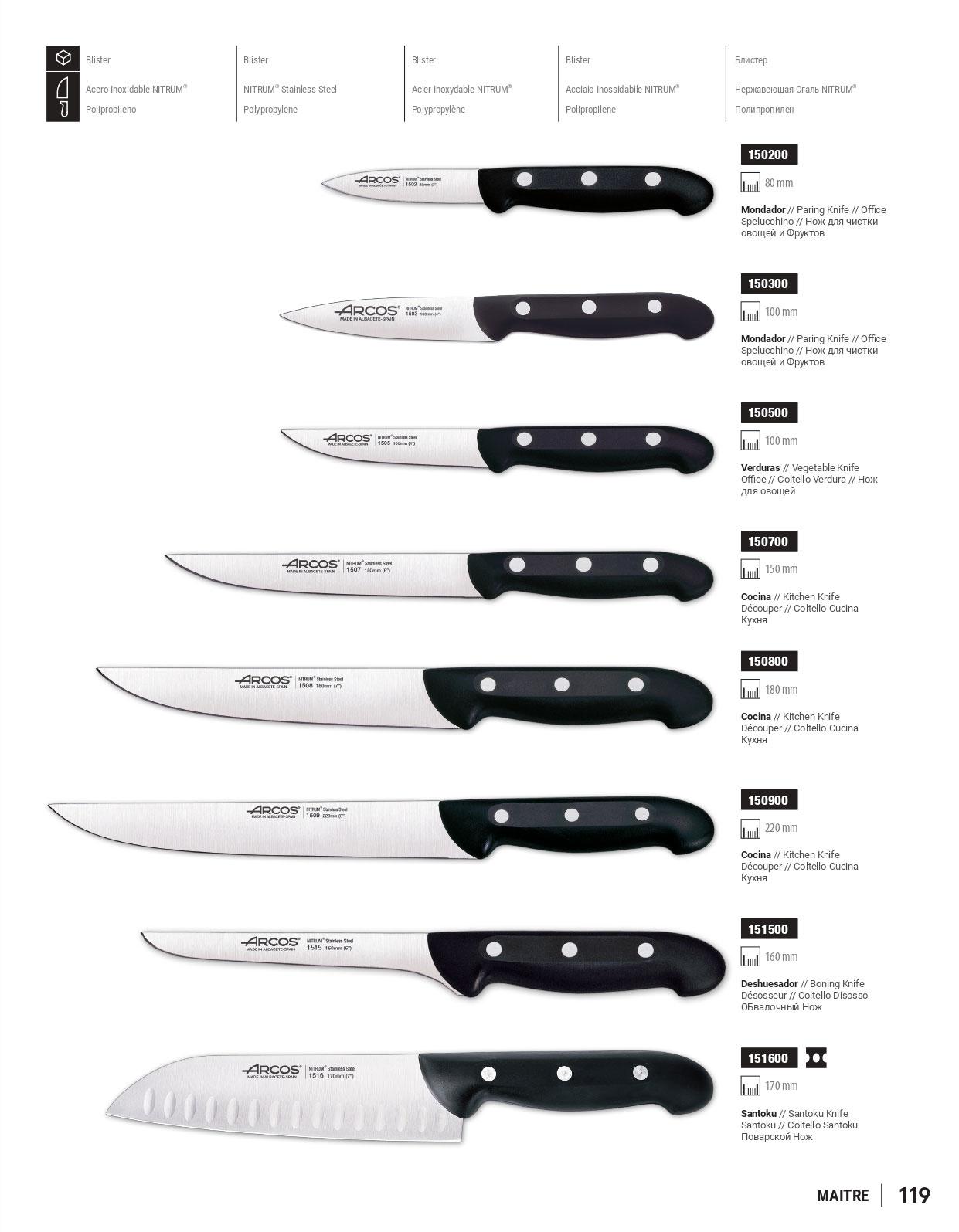 Cuchillo de cocina Arcos Maitre con mango de polipropileno negro ...