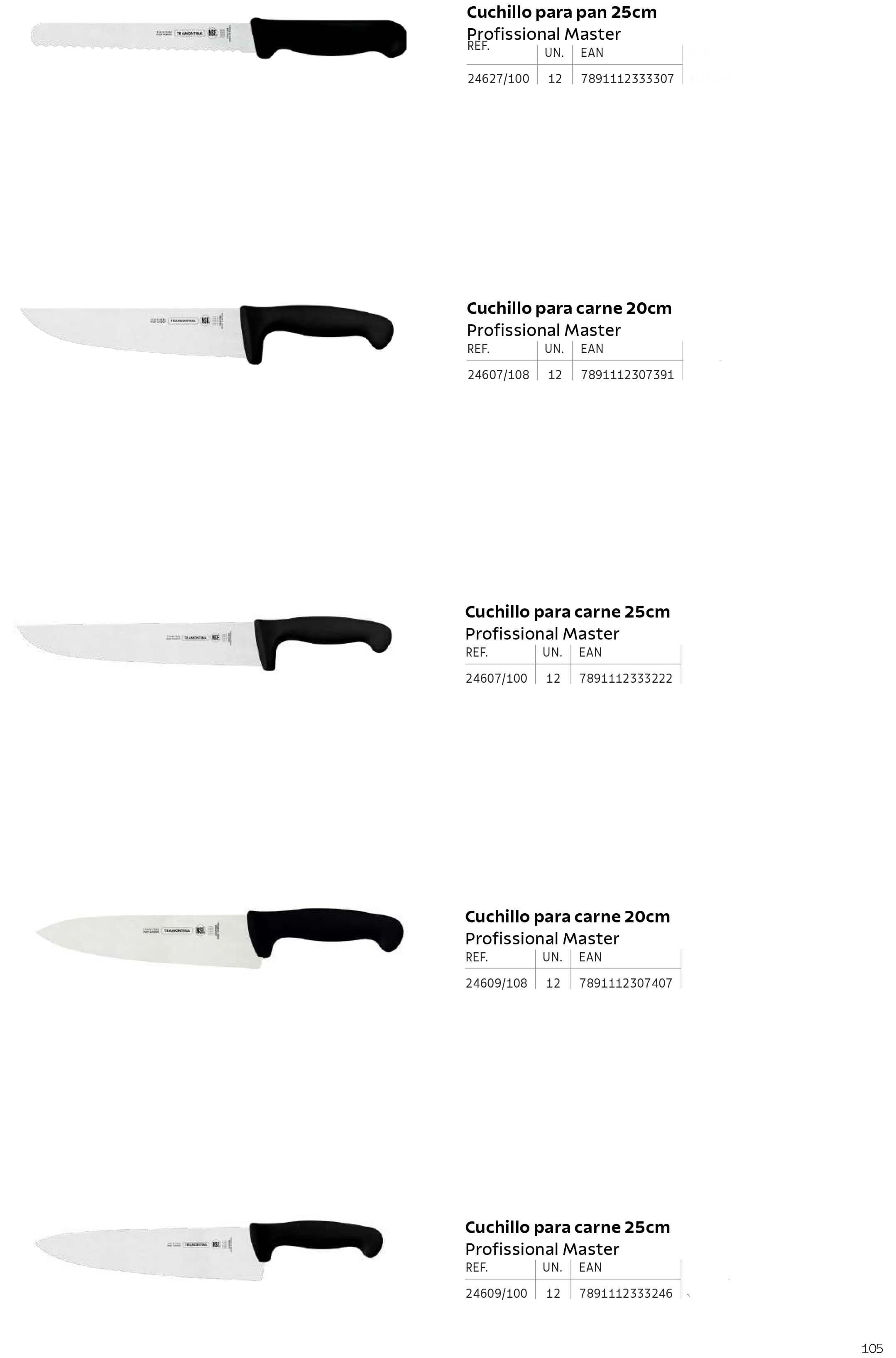 Cuchillos de cocina con hoja de acero inoxidable y con mango de polipropileno. Hojas de 20 y 25 cm. Cuchillos carniceros y paneros. Disponibles en diferentes colores.
