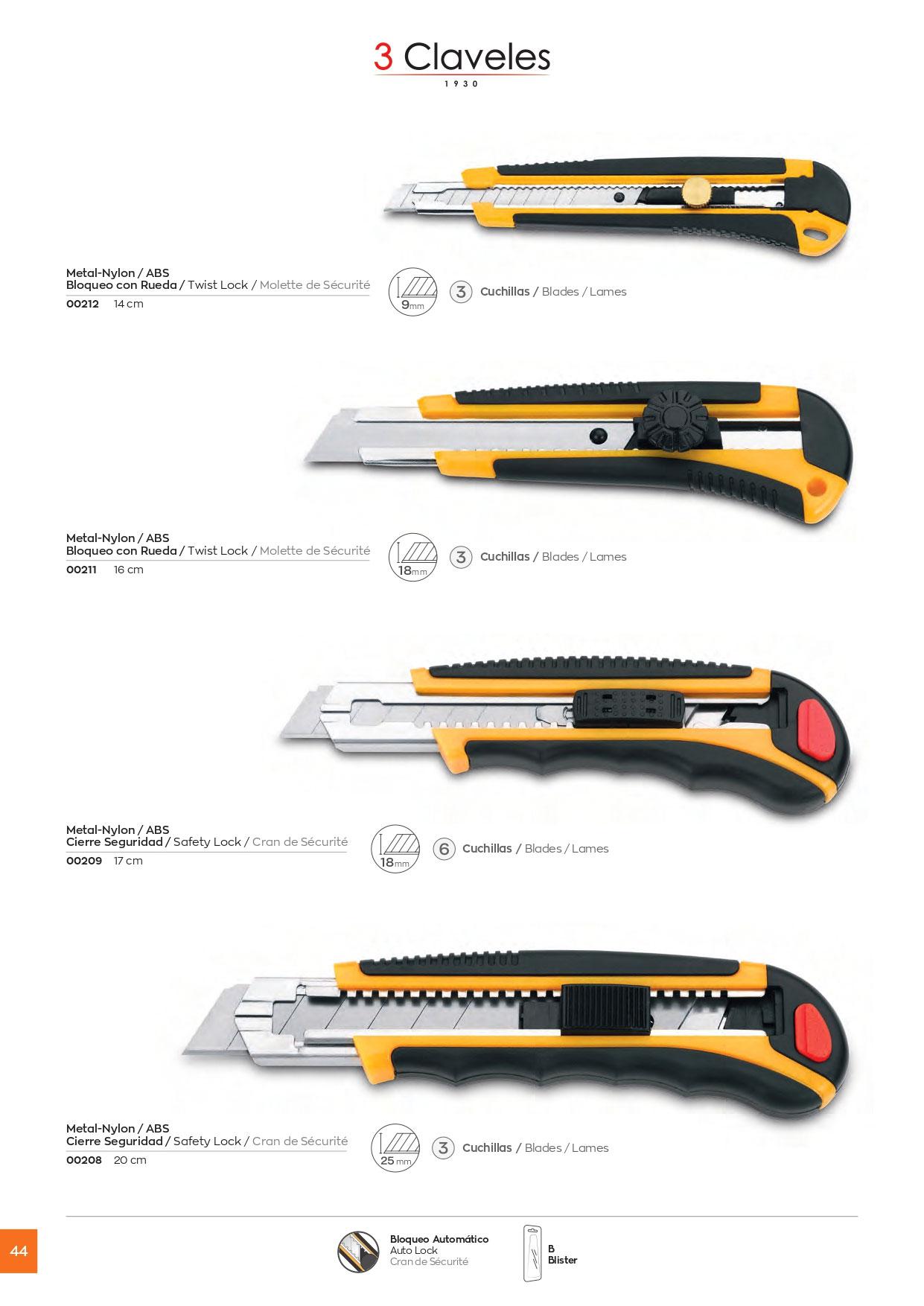 Cutter de 25 mm con mango de metal-nylon y ABS con cierre de segu...