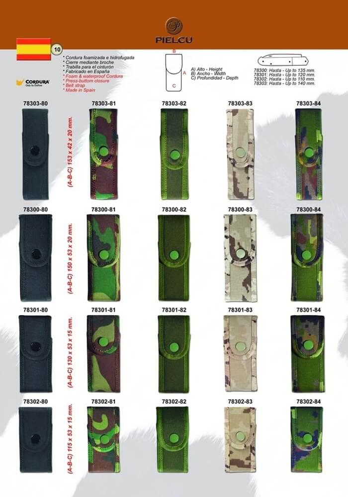 . Fundas de navajas con Cordura foamizada e hidrofugada, cierre mediante broche y trabilla para el cinturón. Fabricadas en España.