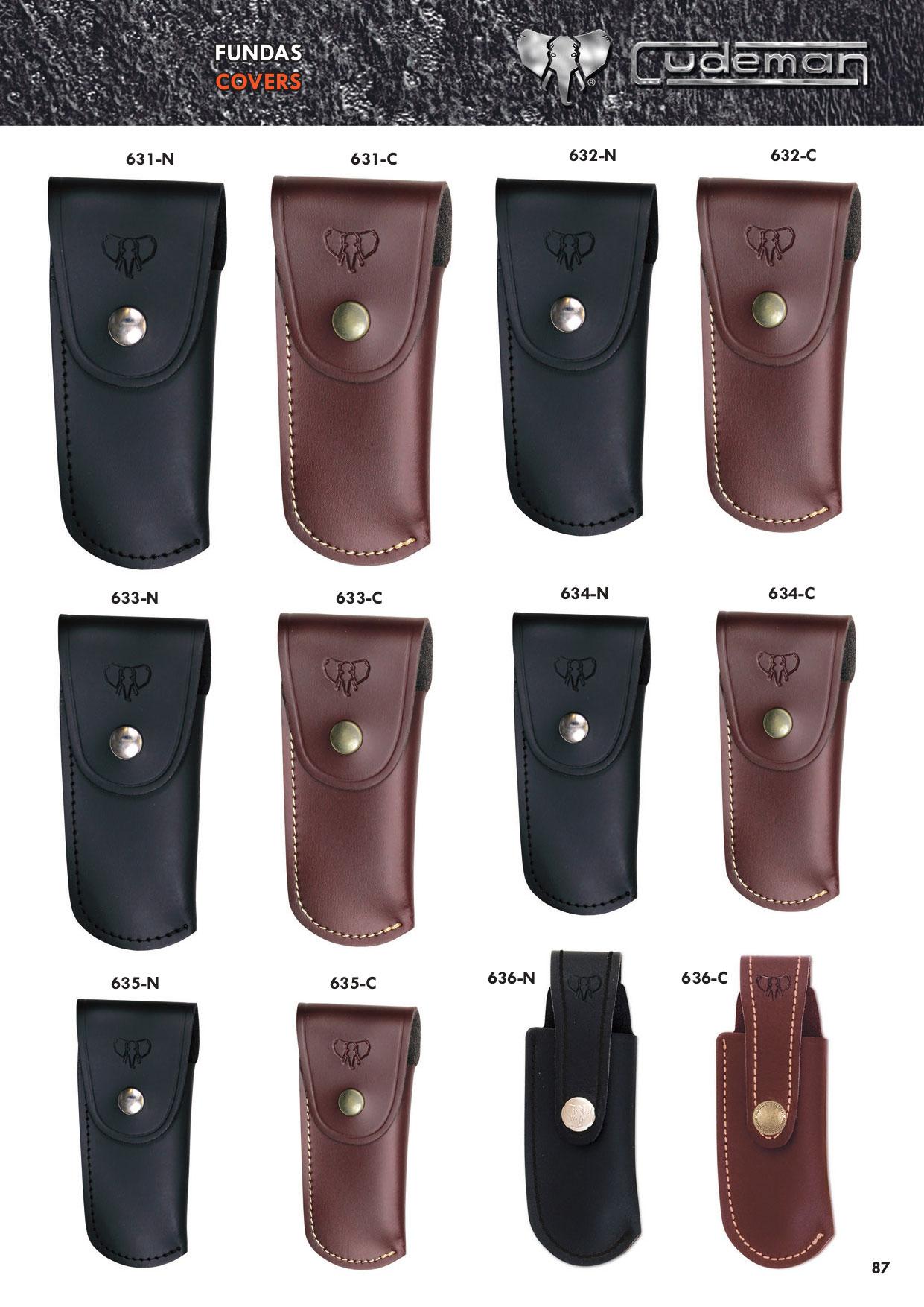 Fundas para navajas en cuero marrón y skay negro. Llaveros.