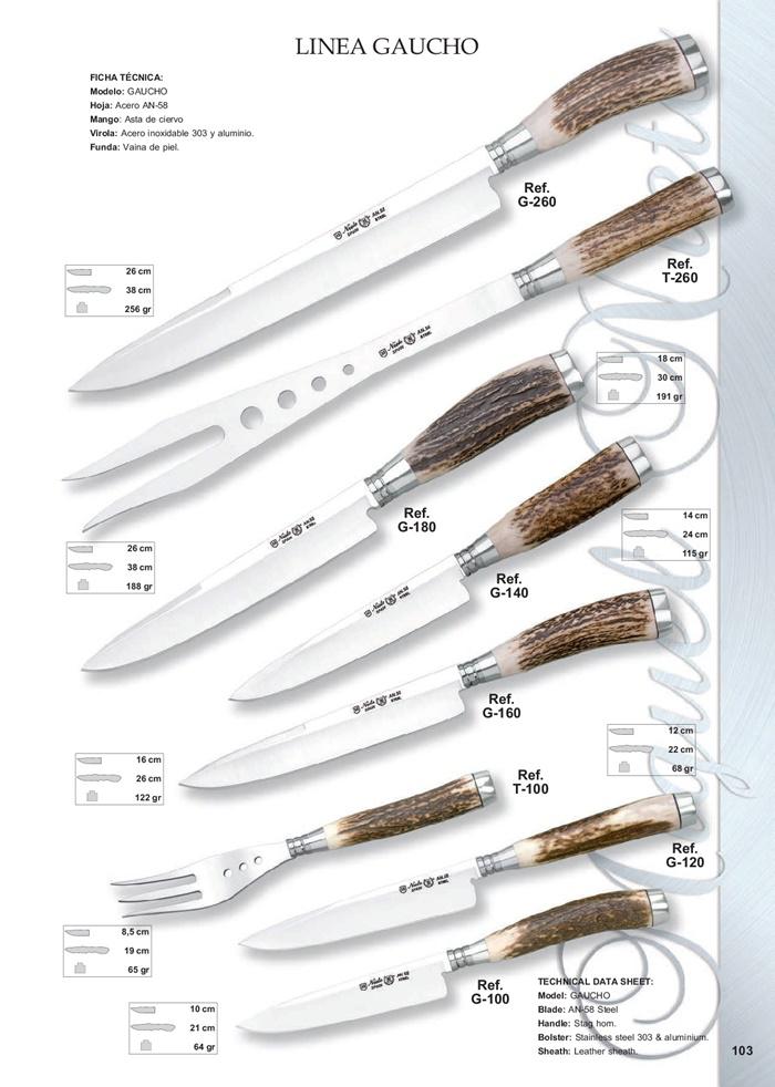 Hoja de acero AN58.Mango de asta de ciervo.Virola de acero inoxidable 303 y aluminio.Funda vaina de piel.
