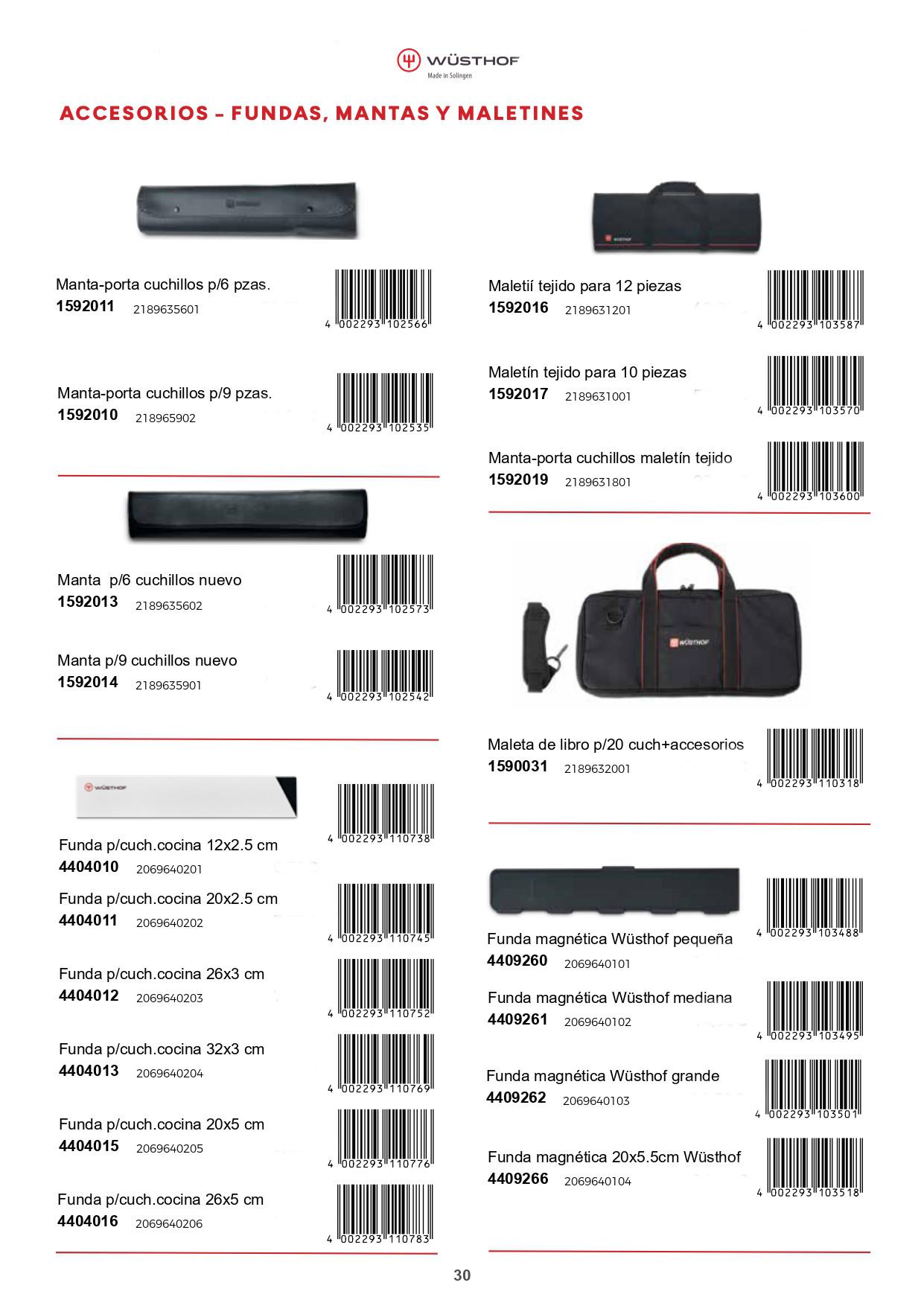 Complementos de cocina. Mantas y maletines Wüsthof de diferentes modelos y tamaños.