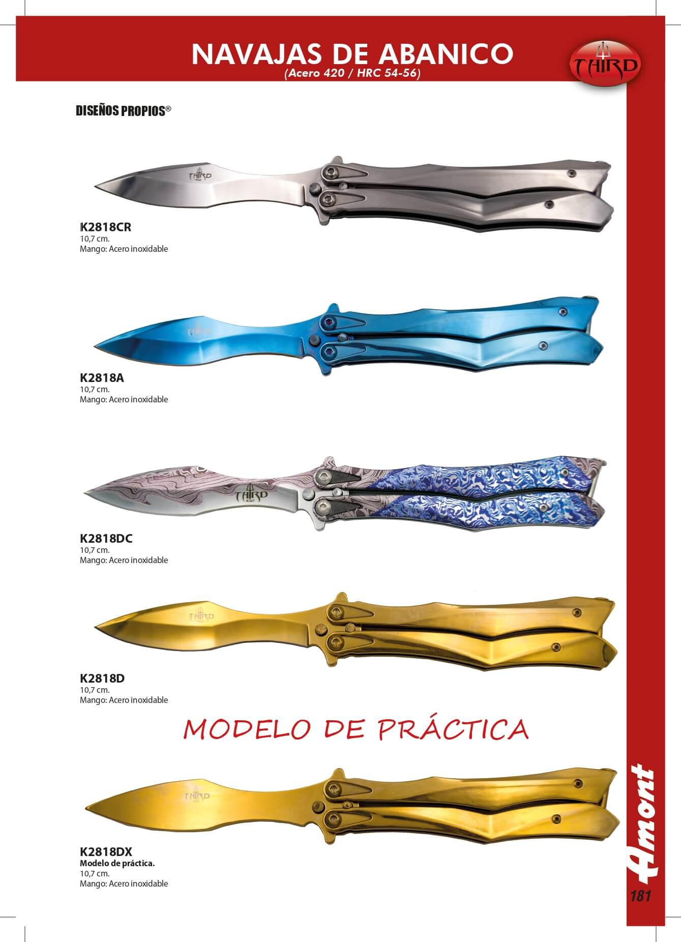 Navaja de abanico Third K2818CR hoja de acero 420 de 10.5 cm acabado pulido brillante de 3.5mm de grossor de hoja, mango de acero inox acabado pulido brillante