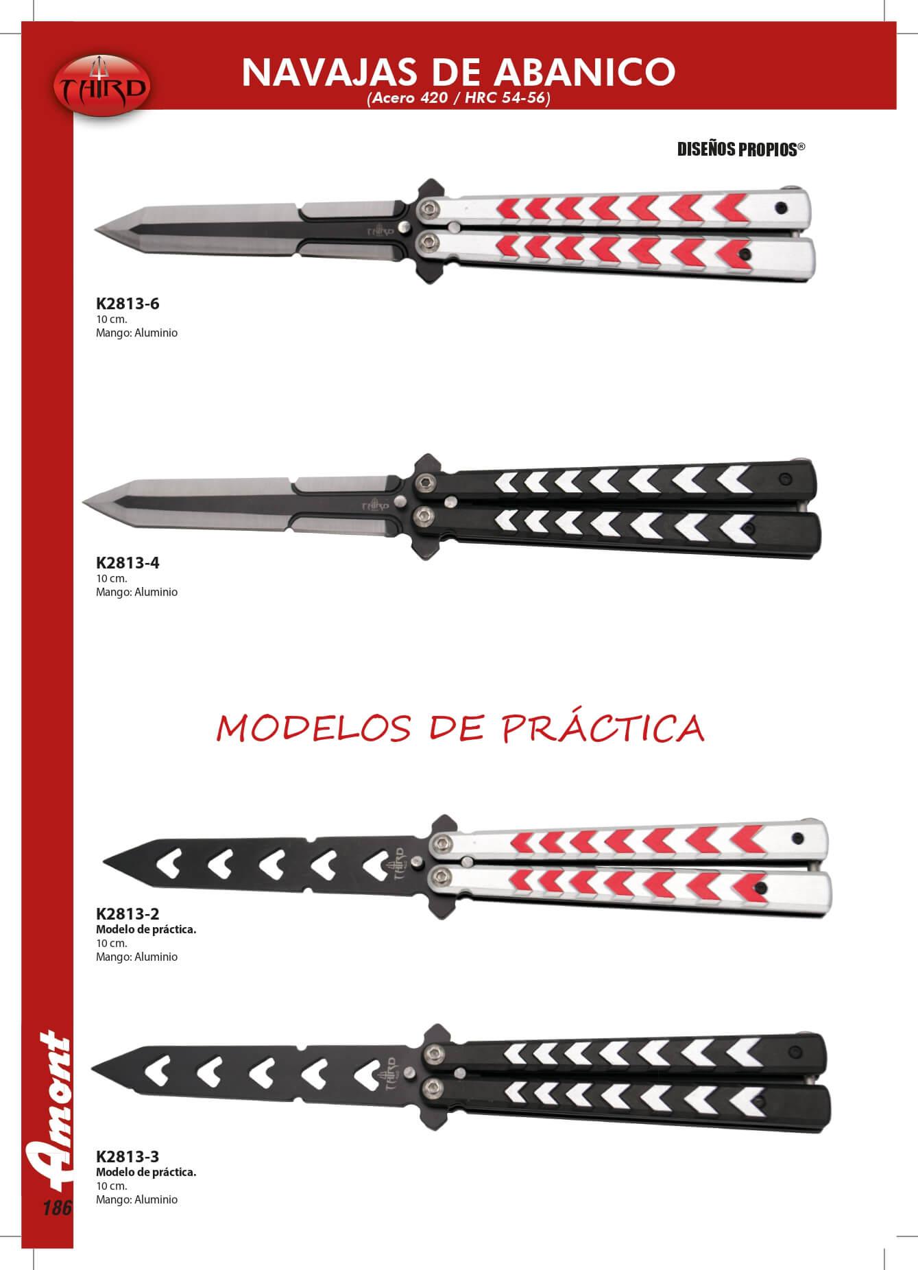 Navajas mariposa con mango de aluminio. Longitud de hoja: 10 cm. K2813-6 Plata y rojo K2813-4 Negro y blanco Modelos de práctica K2813-2 Plata y rojo K2813-3 Negro y blanco