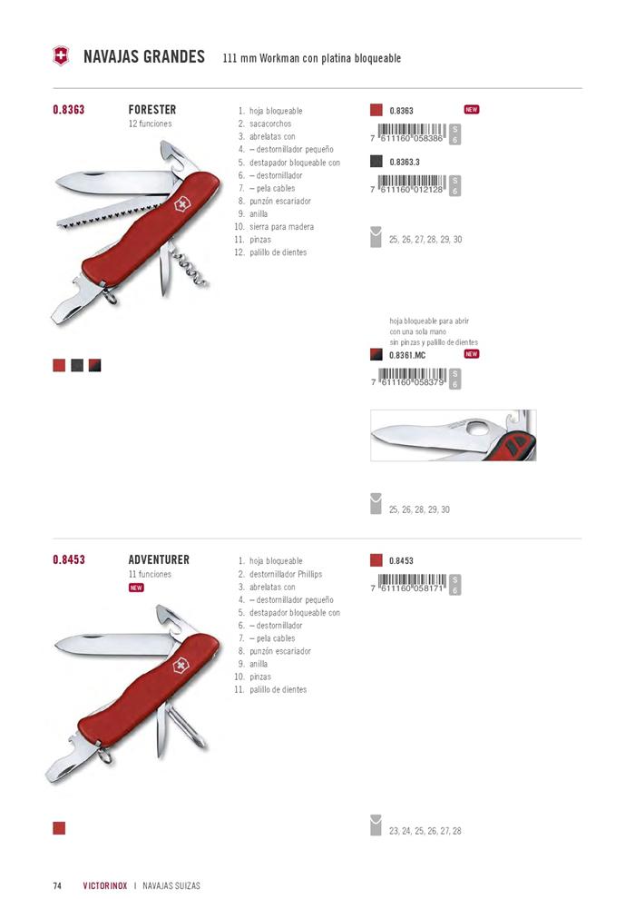 Navaja de bolsillo con serrucho para madera. Esta navaja multiusos incluye las 12 funciones esenciales Victorinox. Hoja grande, destapador, destornillador 7 mm bloqueable, pela cables, sierra para madera, abrelatas, destornillador 3 mm, punzón escariador, sacacorchos, pinzas, palillo de dientes, anilla.