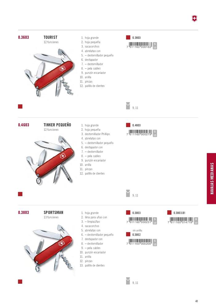 Hoja grande, hoja pequeña, destornillador Phillips 1/2, punzón escariador, abrelatas, destornillador 3 mm, destapador, destornillador 6 mm, pela cables, anilla, palillo de dientes, pinzas.