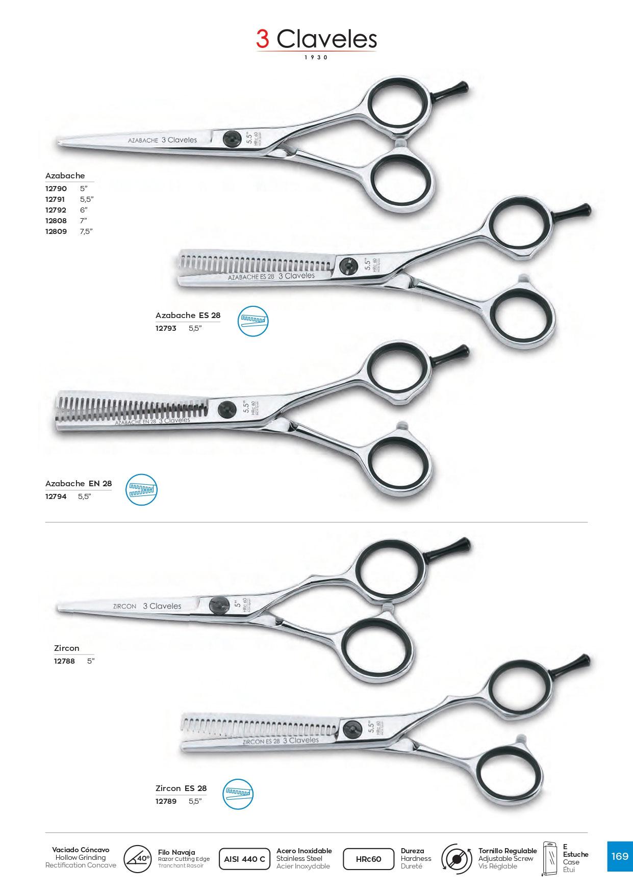 Azabache EN28 5.5" hairdressing scissors with razor edge 3 Clavel...