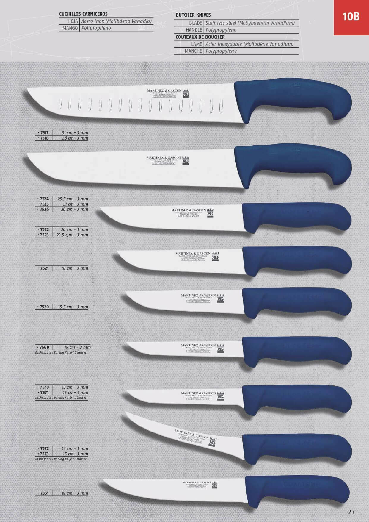 Stainless steel blade. Polypropylene handle. Thickness 3mm.