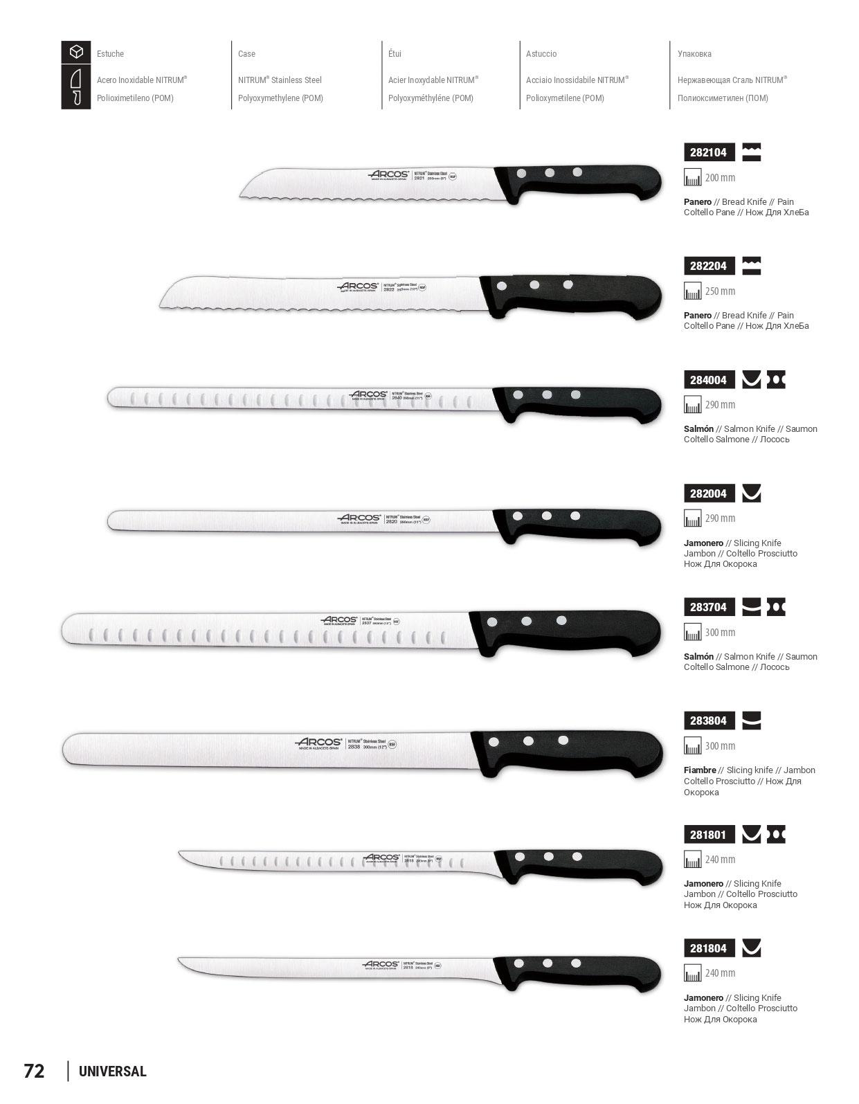 Professional chef knives and butcher. Cut ham. Cut salmon. NITRUM stainless steel blade. POM Mango. UNIVERSAL series.