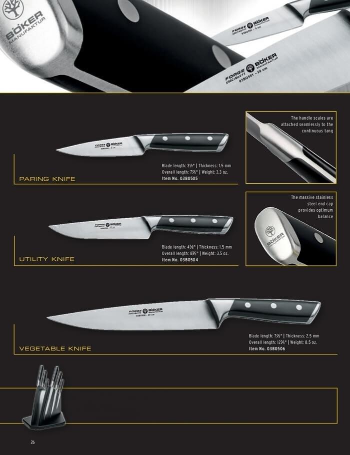 This innovative forged kitchen knife series from Boker combines innovative and dynamic designs with a classic material selection, at a premium quality level. The attractive, eye catching design lines distinguish this series significantly from the masses of average kitchen knives,without being too flashy.