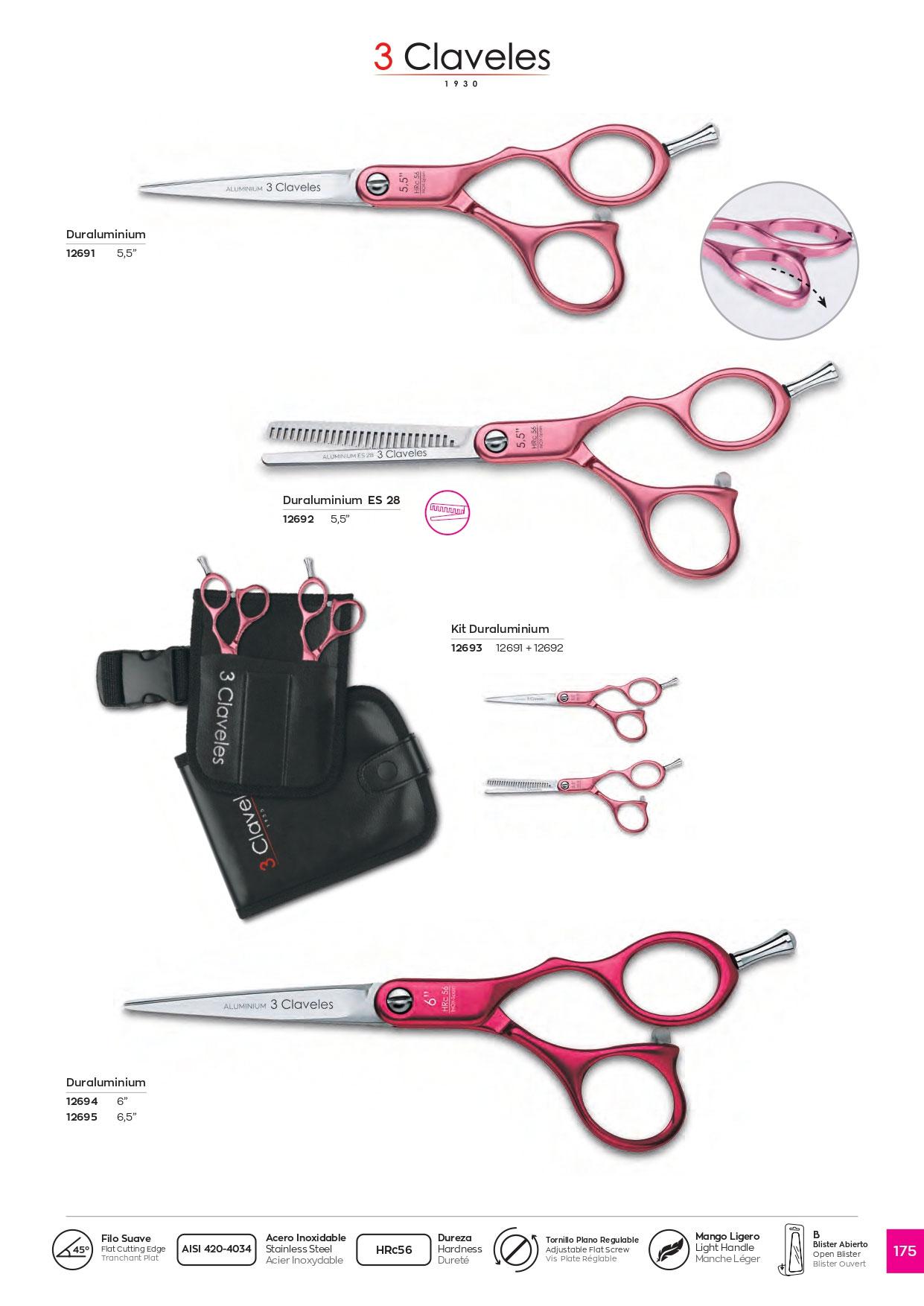3 Claveles Duraluminium pink hairdressing kit 5.5" with soft edge