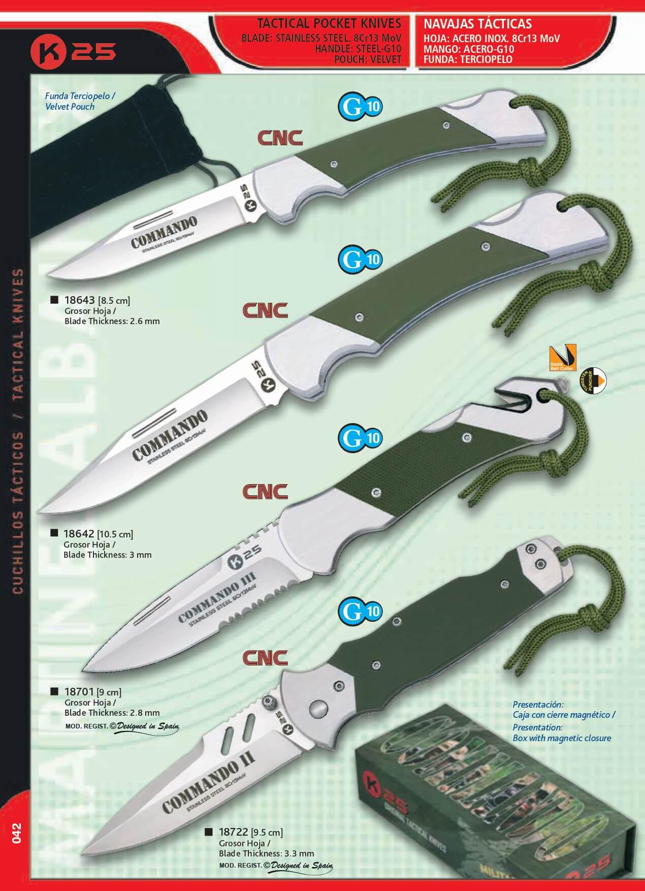 Commando Tactical Knives with 8Cr13 MoV stainless steel blade, steel handle and G-10 and velvet sheath.