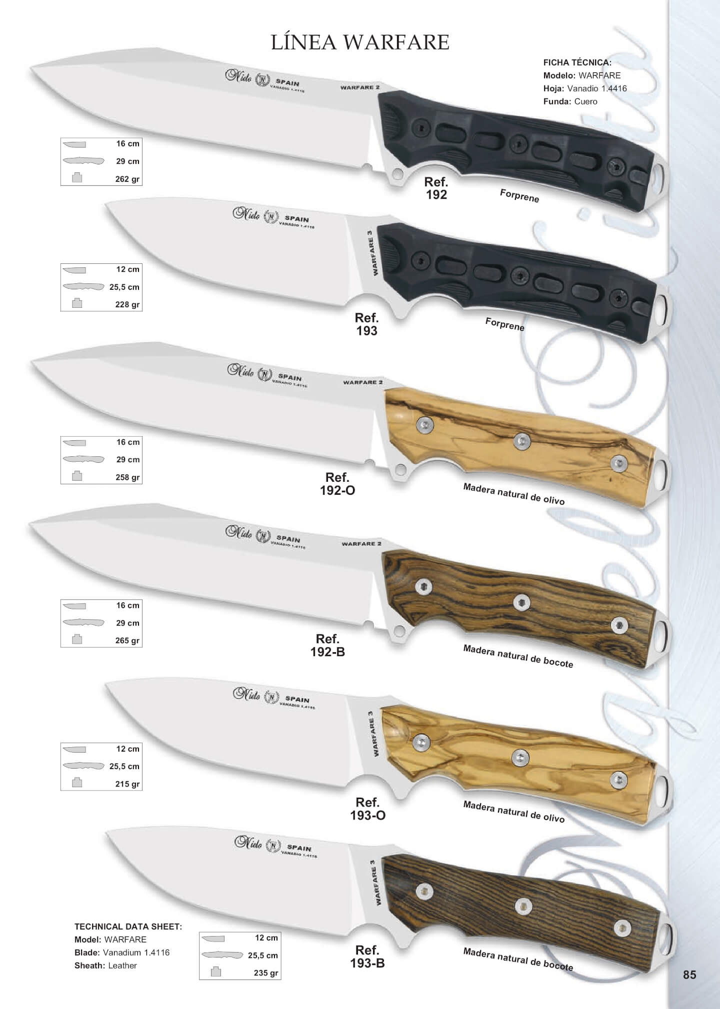 Nieto Warfare 2 and 3 knives.Tactical knife with 1.4116 Vanadium steel blade. With sheath and hole for safety cord.