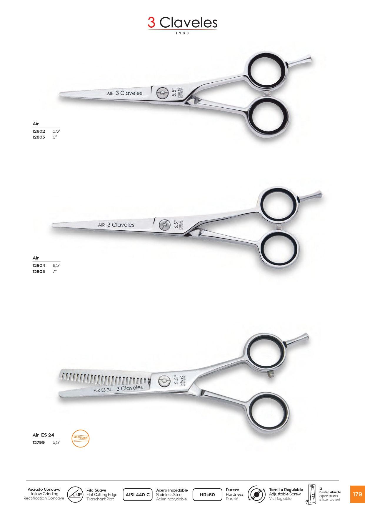 Ciseaux de coiffure Air 6,5" en acier inoxydable 3 Claveles