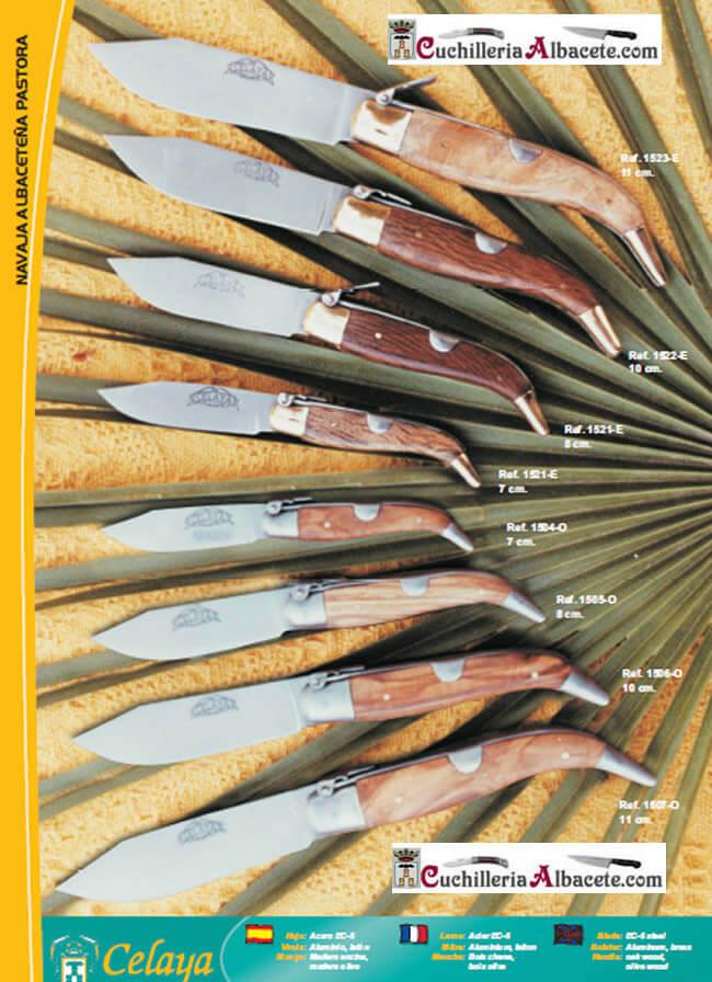 Couteau de poche classique Albacete avec une lame "pastora" en acier au carbone ou en acier inoxydable. Poignées en chêne vert ou en olivier.