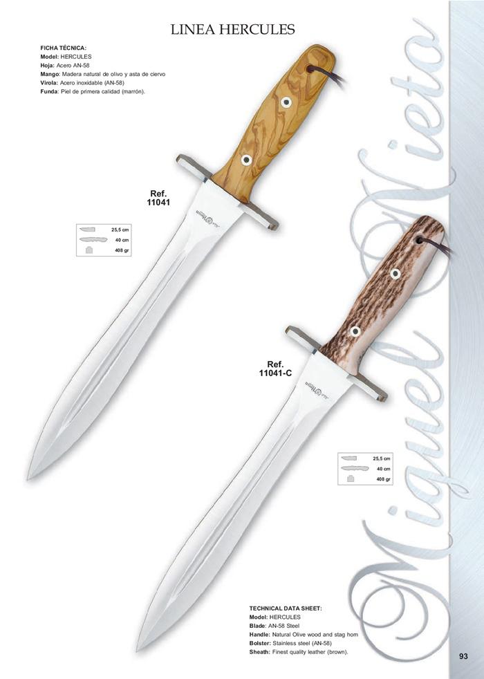 Poignée: Bois d'olivier naturel. Longueur de la lame: 25,5 cm. Longueur totale: 40 cm. Poids: 408 grs.