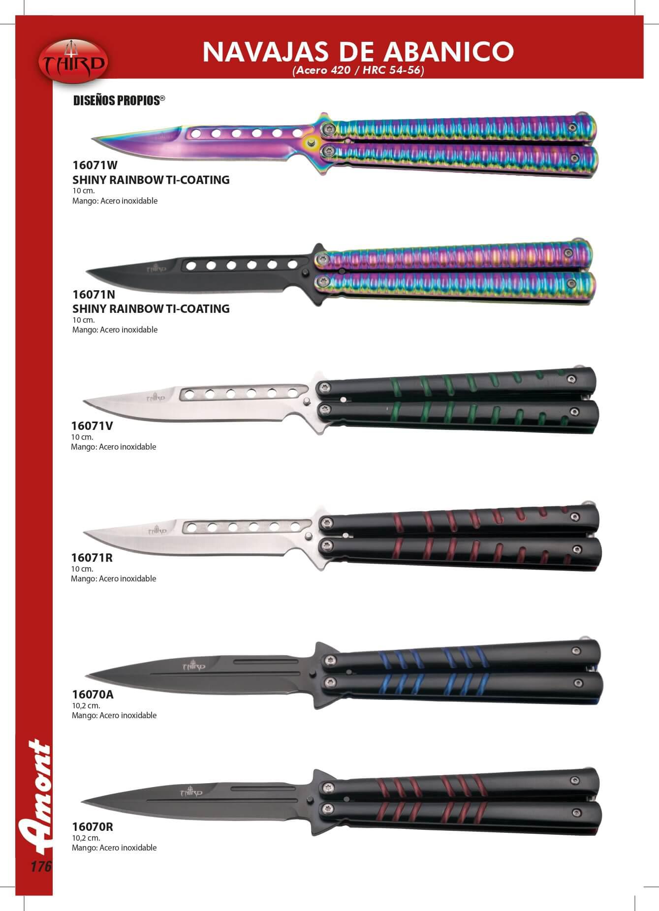 Couteau papillon de 10 cm. Poignée: acier inoxydable multicolore.