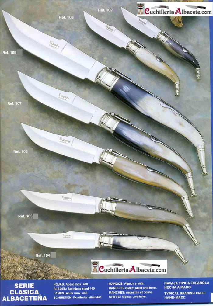 Albacete Artisanat couteau, une lame d'acier inoxydable 440, maillechort virole et évidement