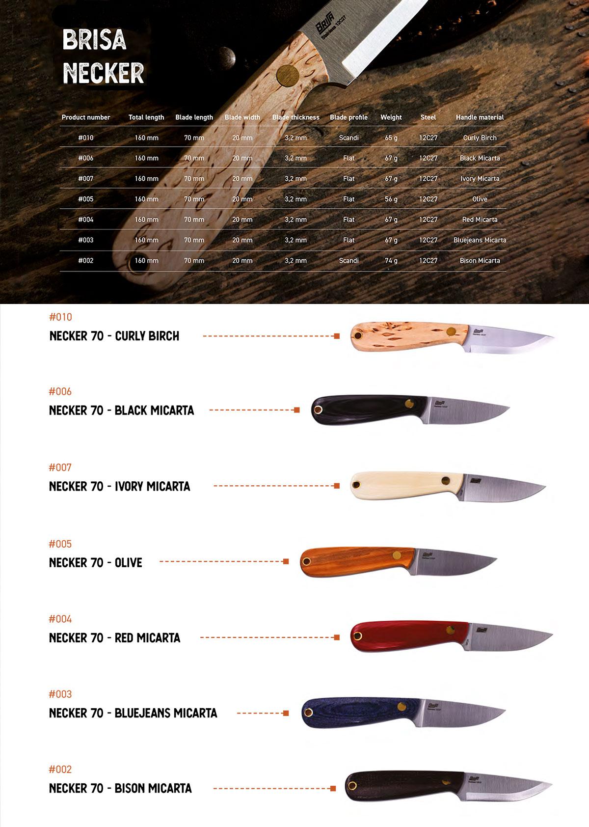 Le Necker est l'un des couteaux Brisa les plus populaires. Conçu comme un couteau de cou léger, le modèle a gagné l'amour des gens de tous horizons. Un couteau très polyvalent avec différents matériaux de manche ou finitions de lame.