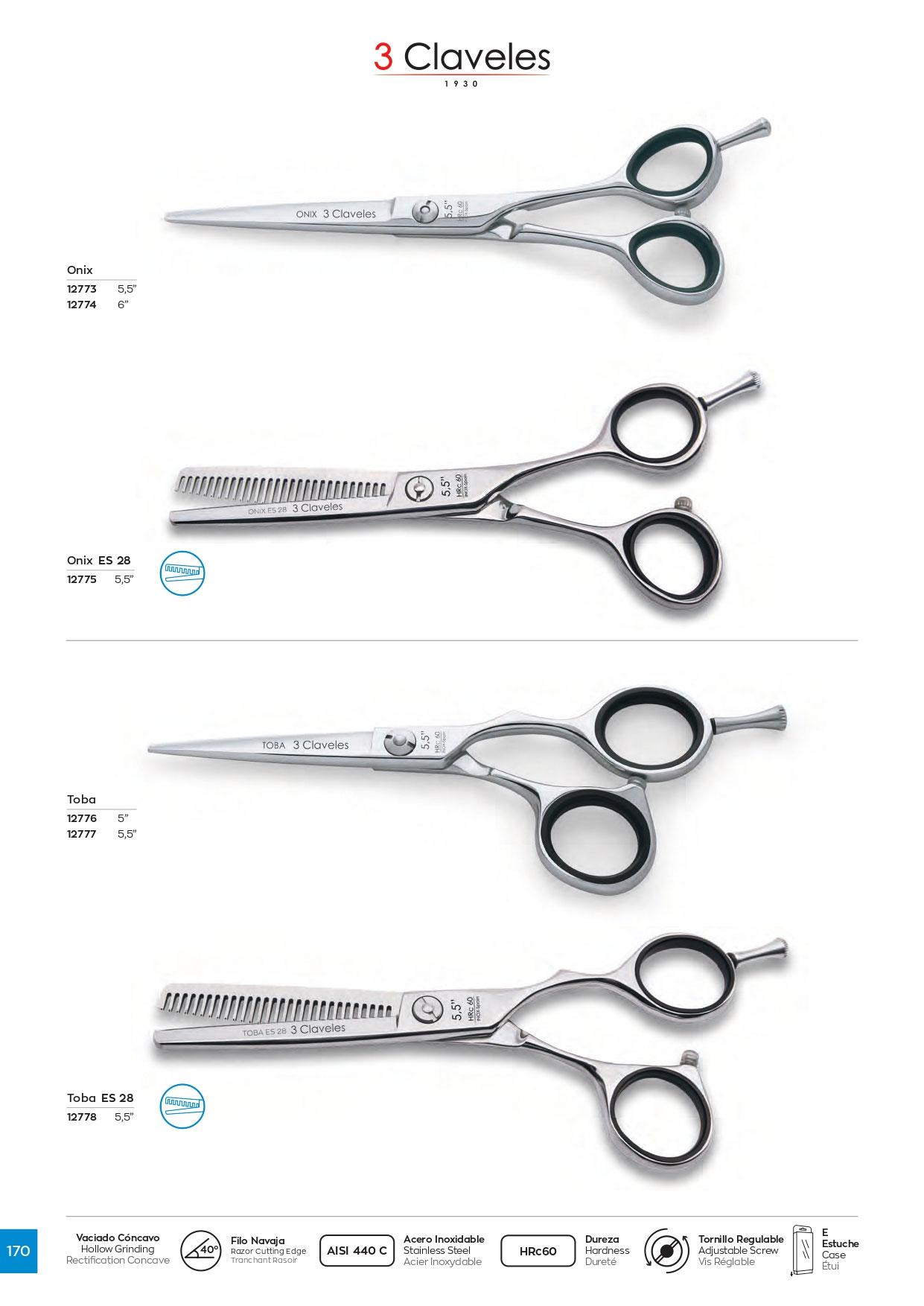 Ciseaux de coiffure Onix 5,5" tranchants rasoir 3 Claveles