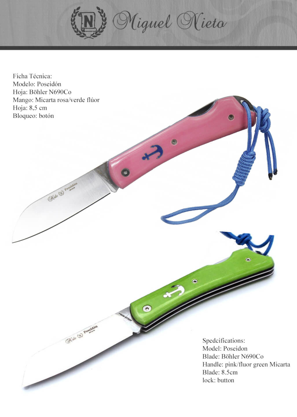 Couteaux Nieto Poseidón avec manches en micarta coloré.