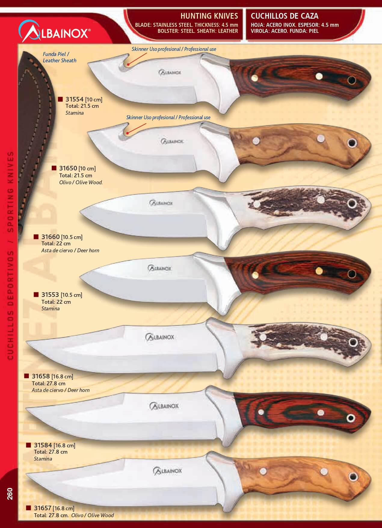 Inox.440 lame d'acier. 4,5 mm d'épaisseur, étui en cuir.