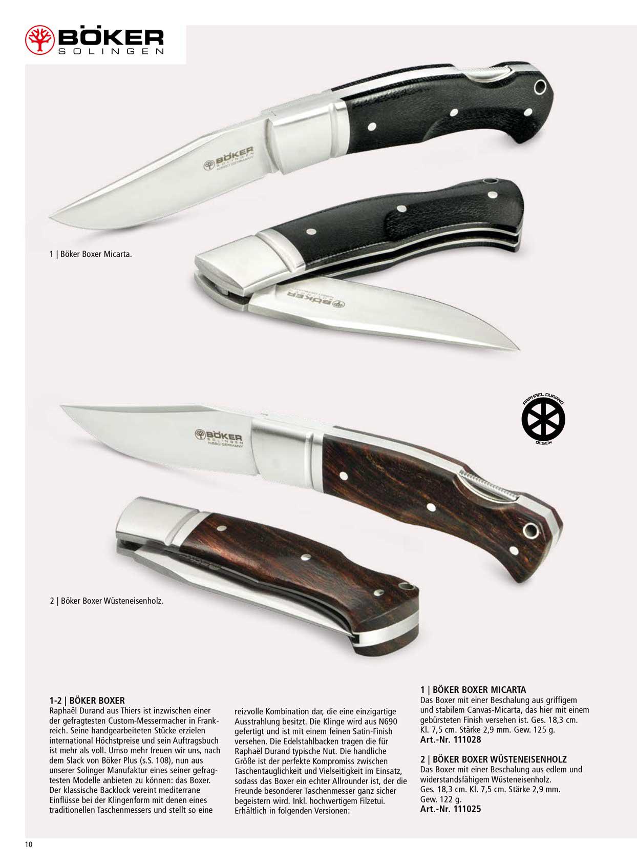 Le backlock classique combine des influences méditerranéennes dans la forme de la lame avec celles d'un couteau de poche traditionnel et représente ainsi une combinaison attrayante qui a un charisme unique. La lame est fabriquée à partir de N690 et a une finition satinée fine. Les têtes en acier inoxydable portent la rainure typique de Raphaël Durand.