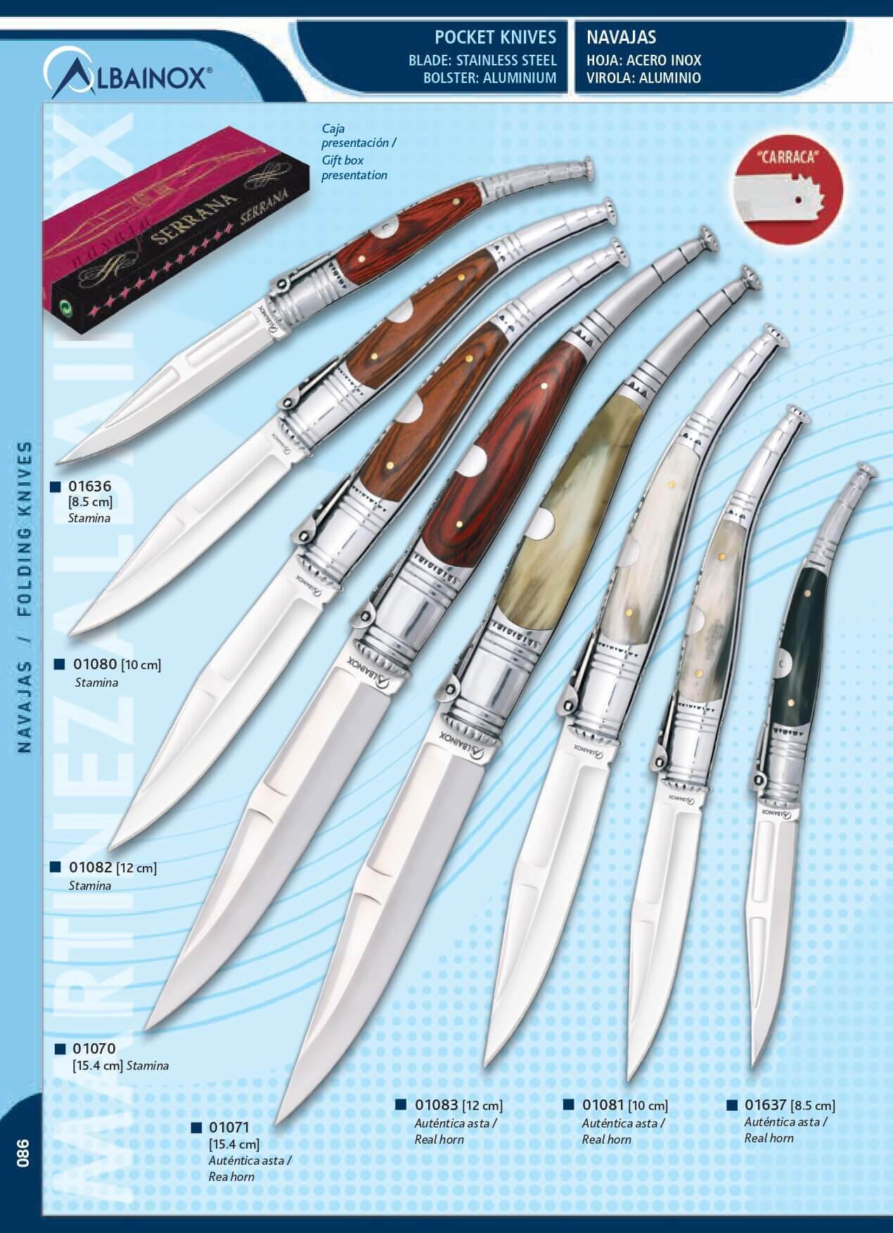 Couteaux de poche Serrano  avec verrouillage à cliquet et virole en acier inoxydable.