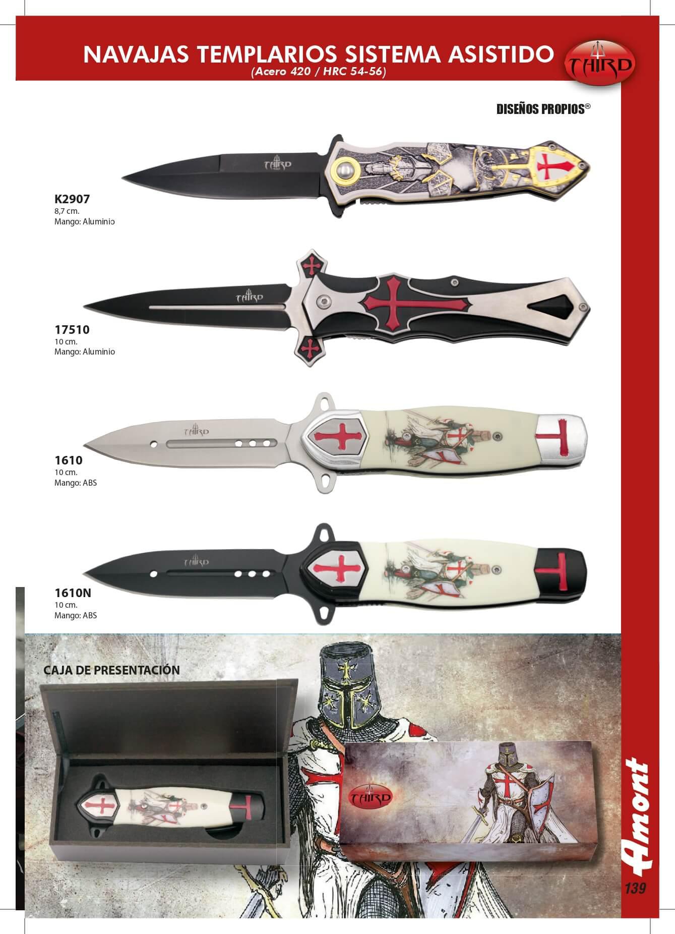 Couteaux de poche de templiers avec système assisté et lame d'acier 420 de dureté HRC 54-56