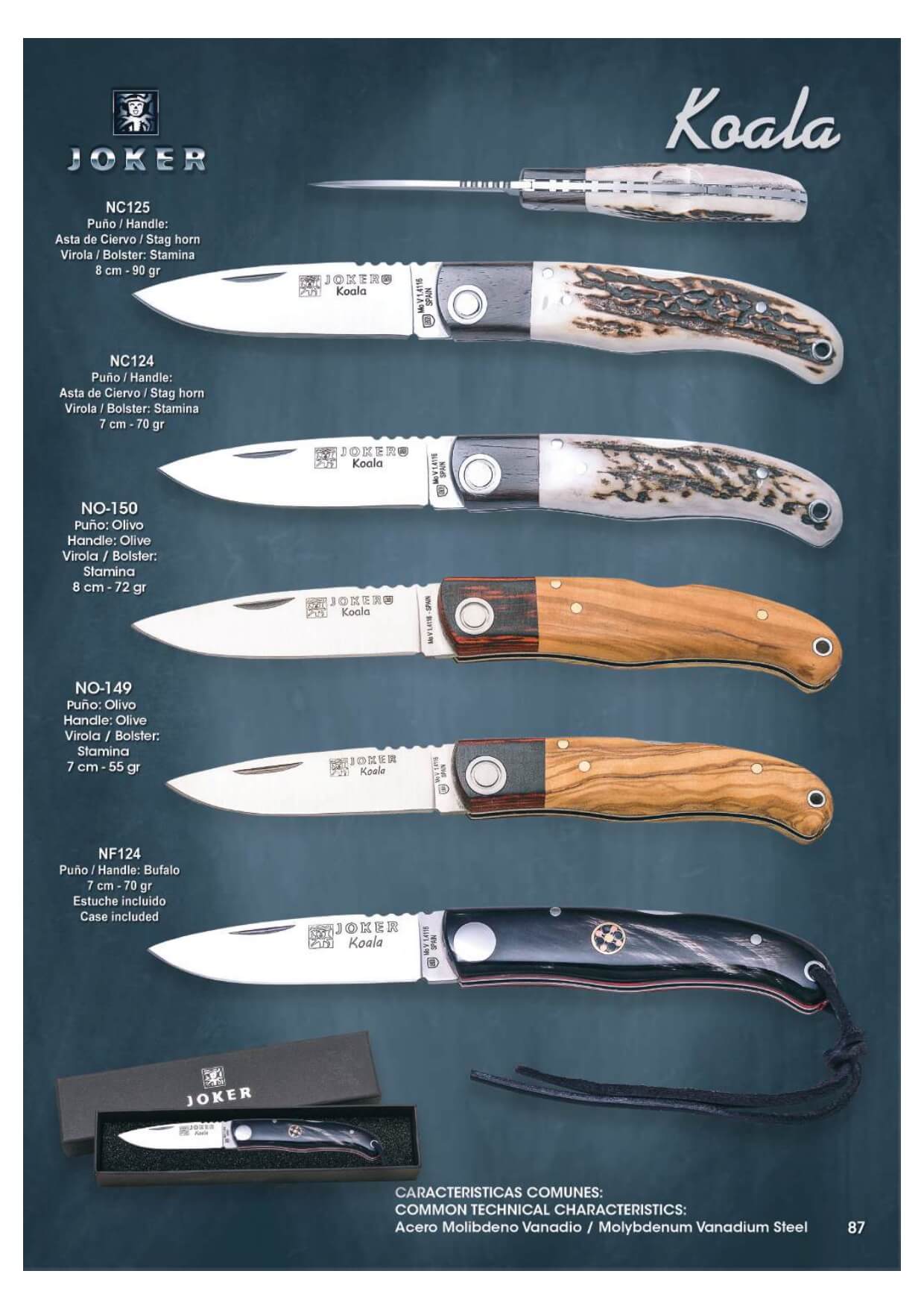 Couteaux avec lame en acier Molybdène Vanadium de 7 cm et bouton de verrouillage arrière. Trou pour lanière et fermeture éclair à l'arrière de la lame pour une meilleure prise en main.