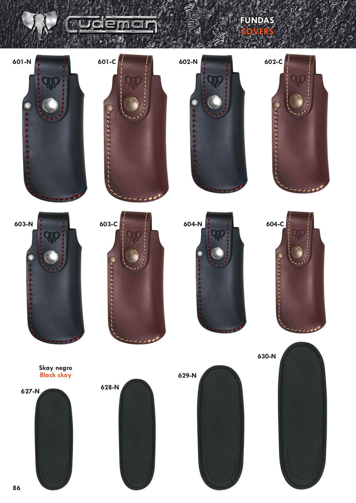Couvre couteaux, cuir noir ou brun.