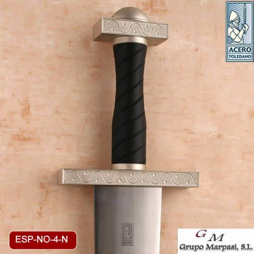 Epées Nordic-4 Hauteur: 87 cm / 34.3 pouces Longueur: 13 cm / 5,1 pouces Poids: 1,87 kg / 4,1 lb ESP-NO-4-L - Laiton ESP-NO-4-N - Nickel