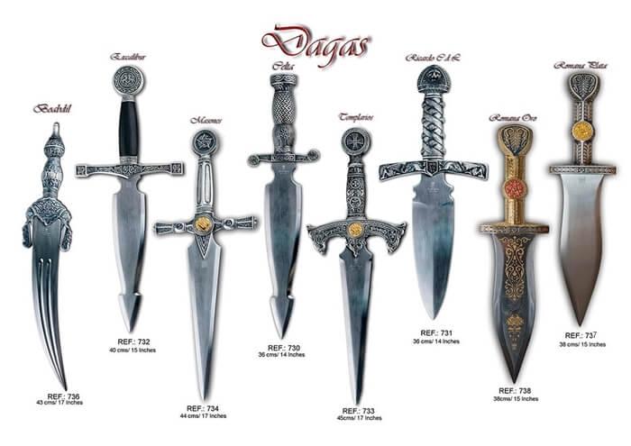 Daggers Boabdil, Excalibur, Maçons, celtiques, Templiers, Richard Cœur de Lion, Romana Roman Gold et Silver.