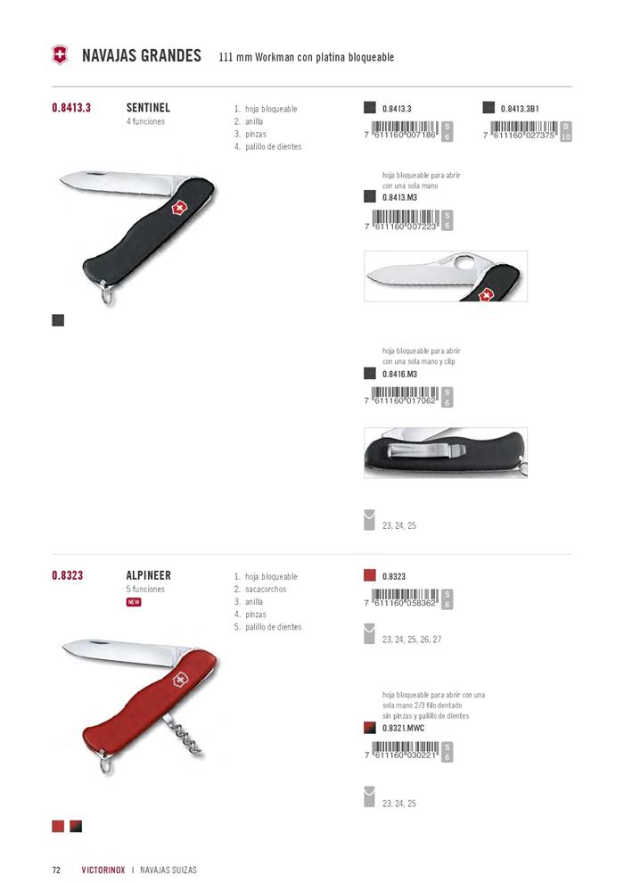 Mêmes caractéristiques que le couteau Sentinel mais avec une grande lame avec verrouillage à une main. Poids: 73 gr.