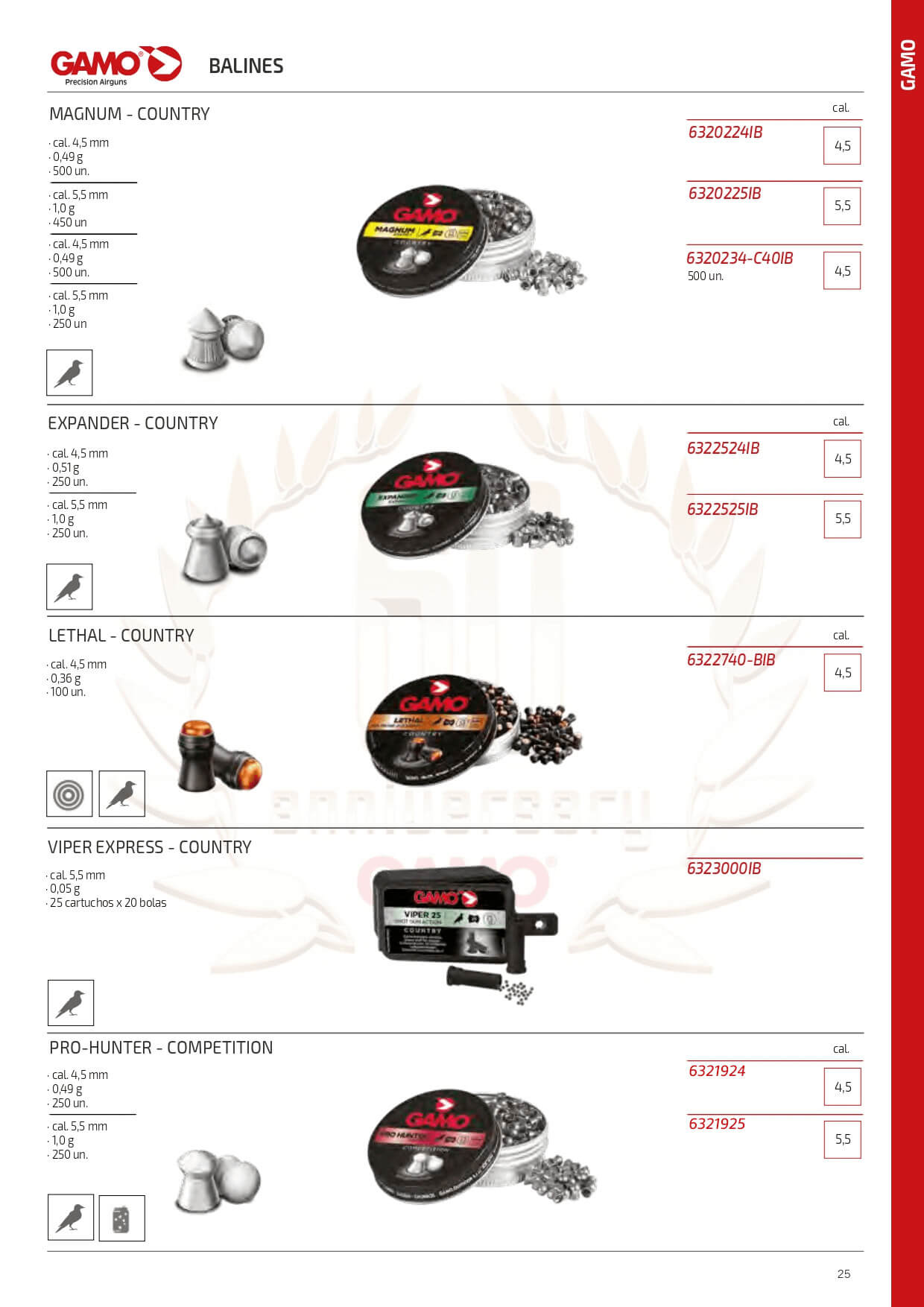 Pallettone, calibro 4.5 e 5.5 della marca Gamo.