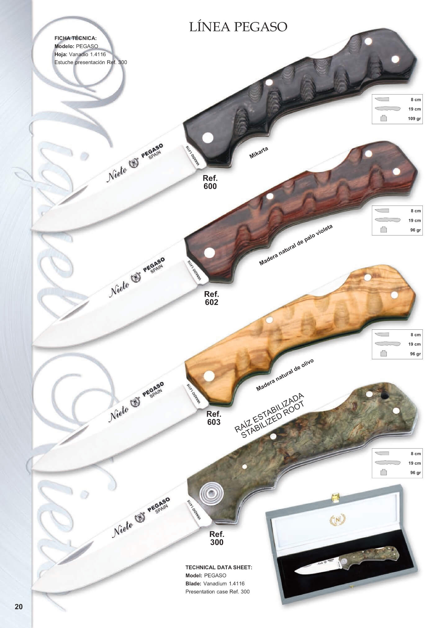 Coltelli tattici, disegnati da Manuel Nieto.AN58 lama d'acciaio. Lunghezza lama 8 cm. Aprire totale 19 cm.600 Mikarta manico nero. Peso 109 gr.602 Kingwood manico in legno naturale. Peso 96 gr. 603 Manico in legno d'olivo naturale. Peso 96 gr.
