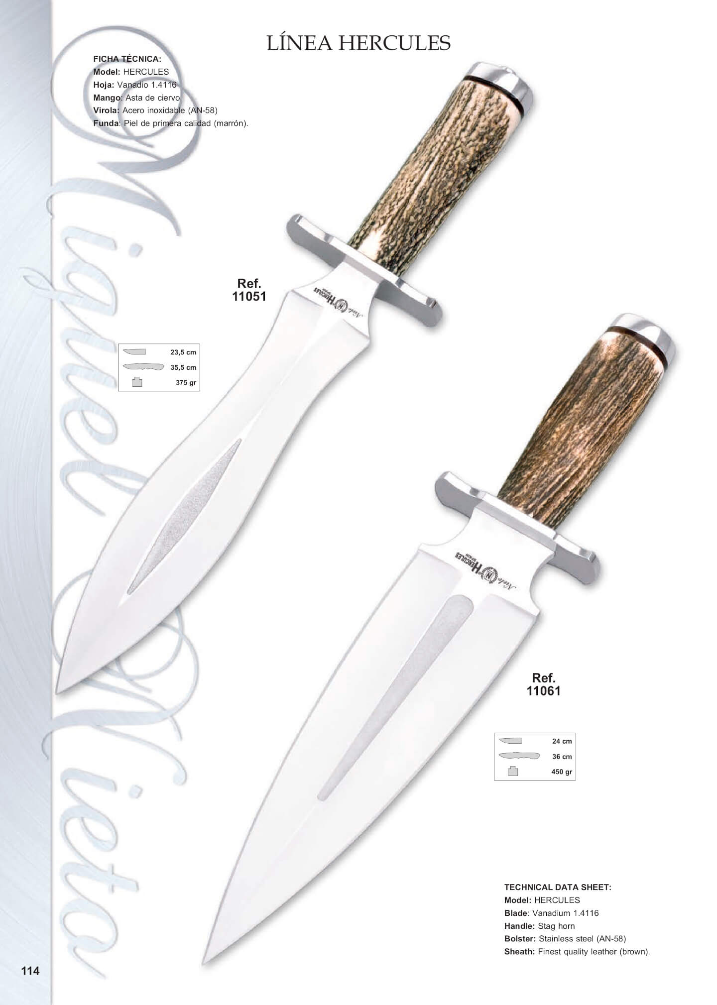 Lunghezza della lama: 24 cm. Lunghezza totale: 36 cm. Peso: 450 gr.