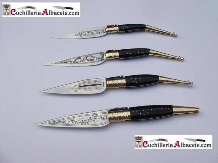 Albacete coltelli Siviglia e la riproduzione, 440 lama in acciaio incisa, puntale in ottone e cavità nella