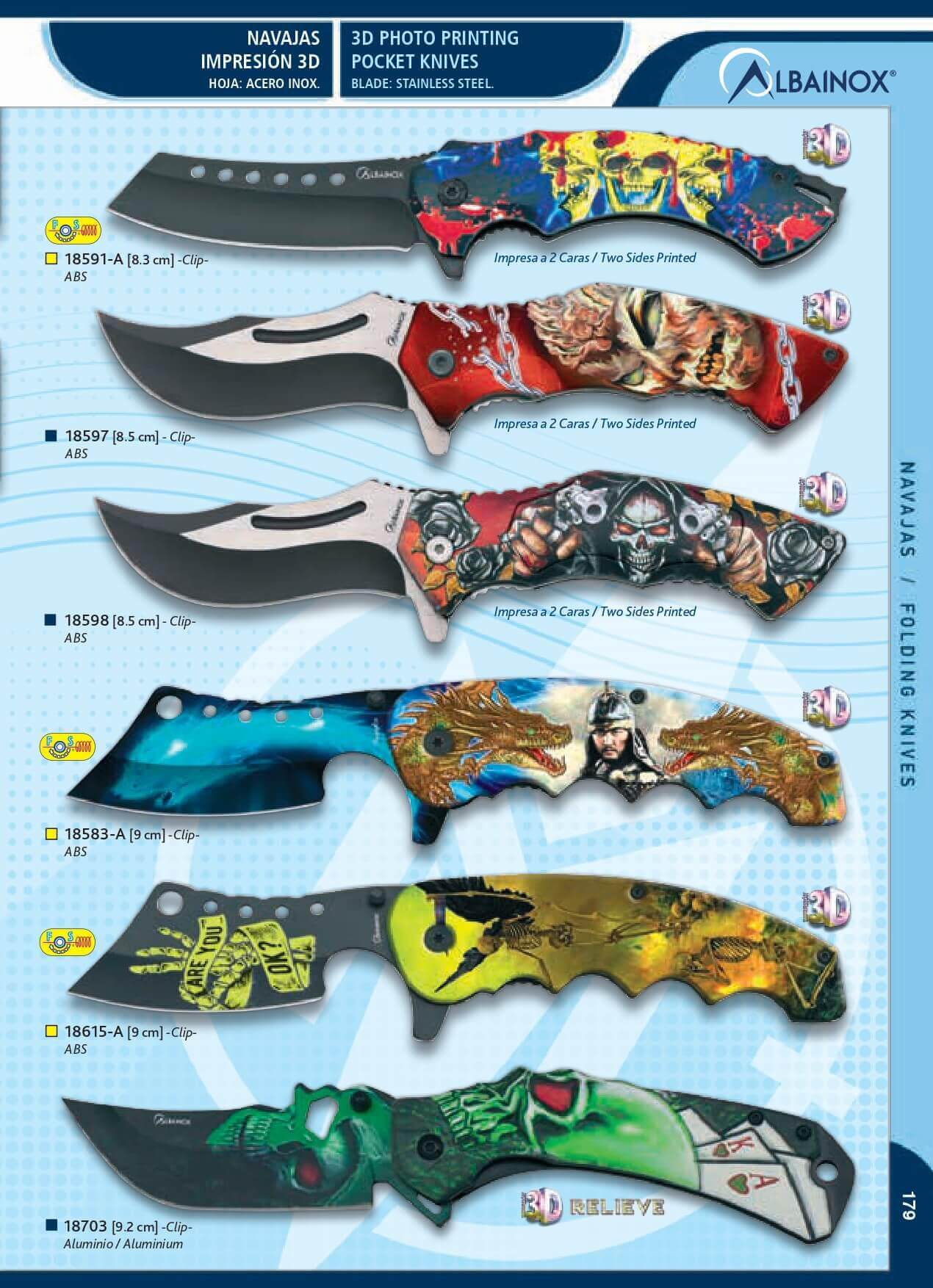 Coltello tascabile Albainox 3D con teschio. Lama da 8,5 cm