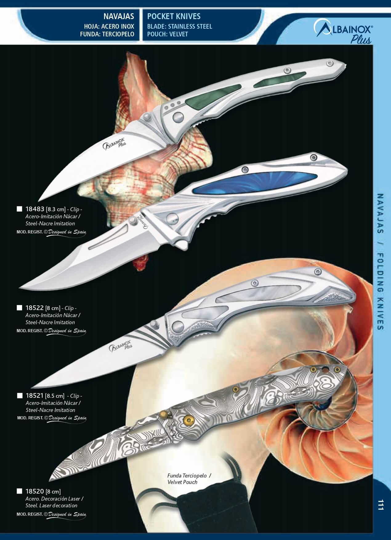 Coltelli da tasca Albainox Plus con lama in acciaio inox e fodero in velluto